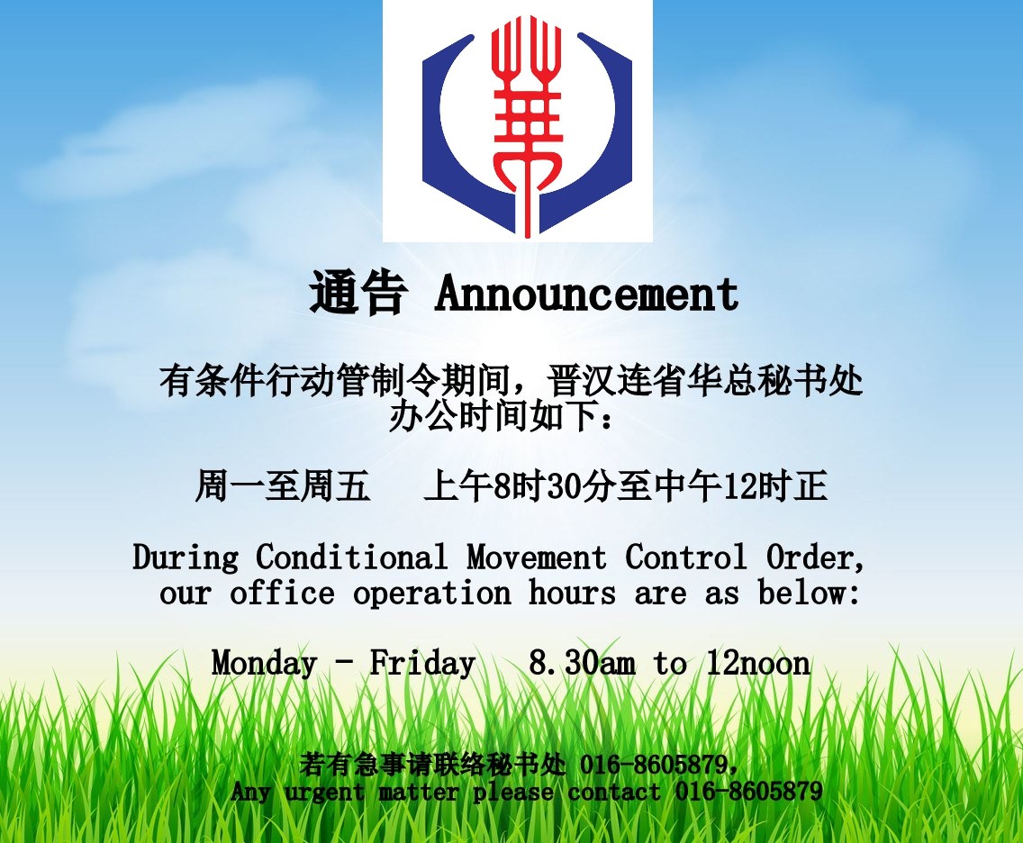 活动与文献, 特稿*通告* 有条件行动管制令期间,晋汉连省华总办公时间:周一至周五 8.30am至12noon Posted on May 13, 2020May 20, 2020 by 华总 华总 12-05-2020 随著各行业有条件复工, “华总紧急救灾组”正式结业 晋汉连省华总 “紧急救灾组“ 志工团简介(第一篇)