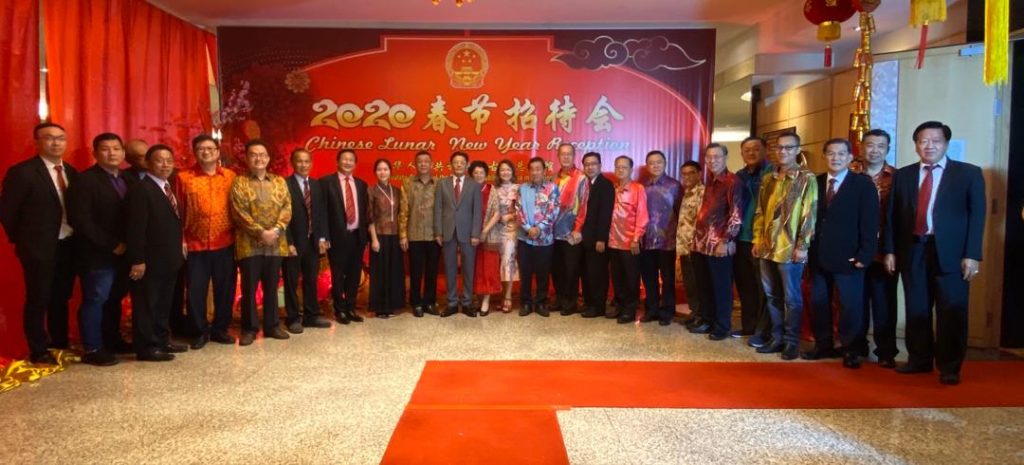 感谢中国驻古晋总领馆邀请本会理事,华青团及华妇组出席,假古晋帝宫酒店5楼宴会厅举行的《2020春节招待会》。 本会会长拿督黄良杰率领一众理事们,华青团及华妇组与总领事程广中伉俪合影留念 绅士们 女士们 2020年新年好,恭祝各界鼠年行大运