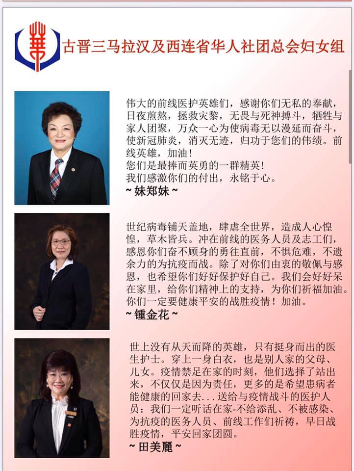 《华总紧急救灾组》主任甲必丹陈国璋(左2)移交胶鞋及N95口罩予古晋砂拉越中央医院医务人员时影。左为会长拿督黄良杰、右为张慧娇。 (古晋4日讯) 晋汉连省华总于昨日移交价值2万5千令吉的300双胶鞋给古晋砂中央医院,作为抗疾期间之用。晋汉连省华总代表在总会长拿督黄良杰的率领下前往医院,随同者包括晋汉连省妇女组主任张慧娇、紧急救灾小组主任甲必丹陈国璋及青年团副团长陈小文。 除了300双胶鞋外,晋汉连省华也移交近百个N95医用口罩给医院。 晋汉连省华做为古晋砂中央医院抗疾支援单位,在抗疾期间,已协助及资助院方很多方面物资,包括医用防护品及食物。 为了确保有足够的资金来购买急需的物资,晋汉连省华总呼吁热心企业机构、商号及个人,尽力资助华总紧急救灾小组,把捐款直接汇入华总银行汇户口: 名字: The Federation of Kuching & Samarahan Division Chinese Associations, Sarawak 银行:Hong Leong Bank 号码:01600206296 晋汉连省华总指出,必须确保在前线抗疫医务人员的防护用品充足,以在较为安全的情况下,为确诊者或疑例者治疗及检查。 在前线抗疫的医务人员必须做足防护措施,以降低被感染的风险,才能进行医人救人的职责,所以晋汉连省华总有必要全力支持及援助前线的医务人员。 另外,晋汉连省华总也再次慎重声明,并没有委托任何人仕、商号、组织,向公众募捐款项或物资。 任何热心捐献者,可将物资直接运输至晋汉连省华总临时“物资收集中心”。 开放时间:星期一至星期六:早上9时至下午4时;星期日:早上10时至下午2时,或联络电话016-8559581,或012-8817778。 图文来自:联合日报 附上链接 https://eunited.com.my/378794/